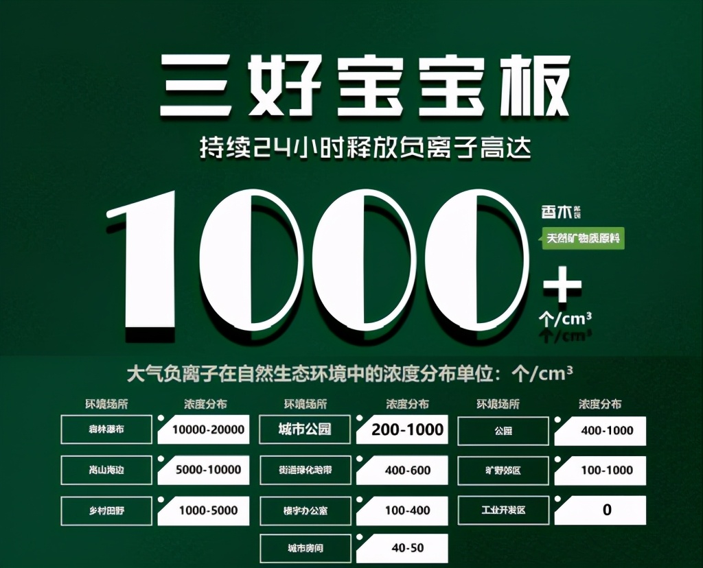 三好宝宝板材环保、时尚、舒适。不仅具有坚韧细腻的材质、稳定的结构、耐磨耐腐等优点,而且从细节上最大程度地还原了纯木自然沉稳的纹理风貌和温润饱满的触感质地,既满足了消费者对健康环保产品的需求,又能保证家居美观度。而三好宝宝板拳头产品负离子抗菌板材,更是持续24小时释放负离子每立方厘米1000+,利于人体健康和室内空气的净化,在家中就能享受到置身森林的清新感觉。