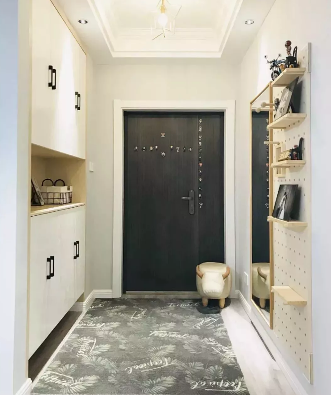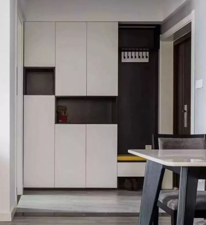 ▲鞋柜的背板、中间留空层等位置以木质为主,结合白色柜门,显得自然优雅好别致。