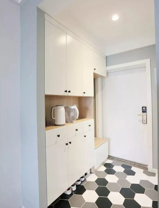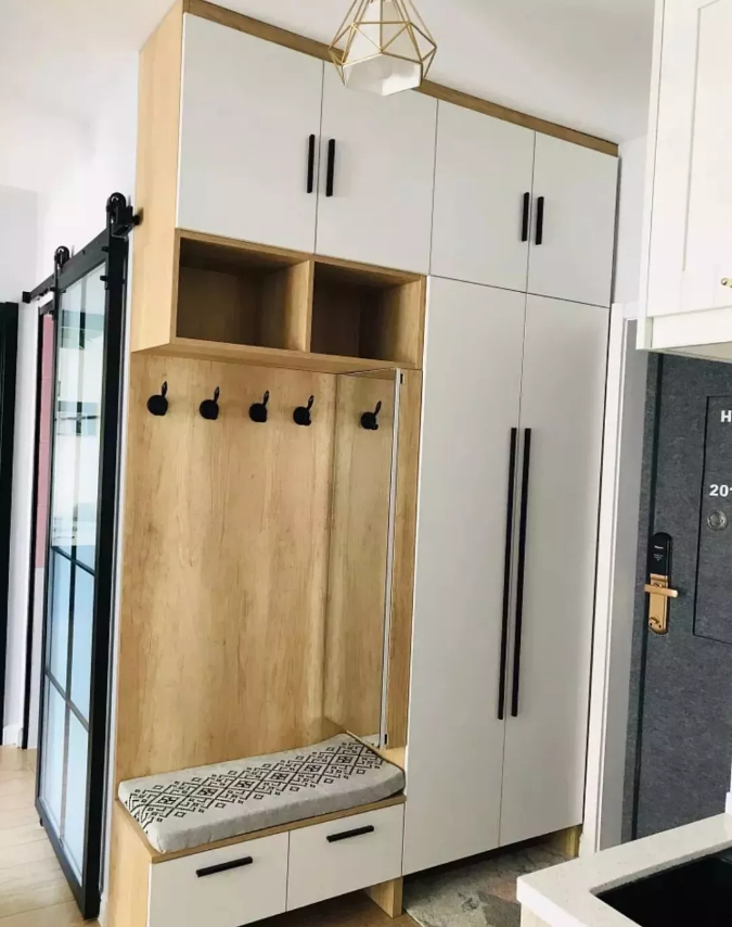 在木色柜体基础,搭配白色柜门,一种由浅至深的层次感,显得温馨自然好档次。